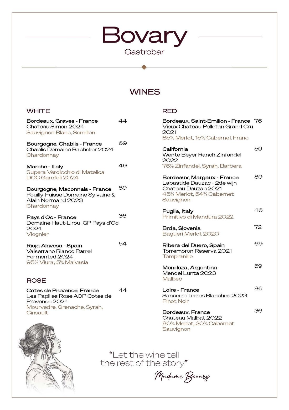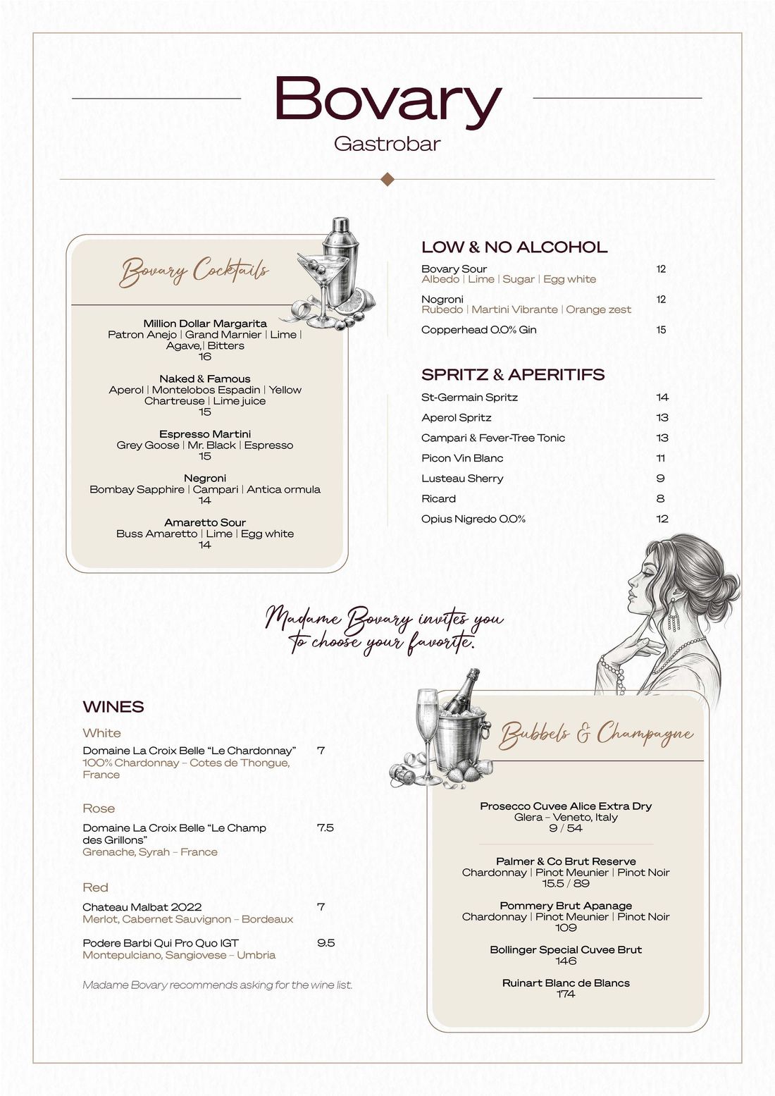 Bovary menu